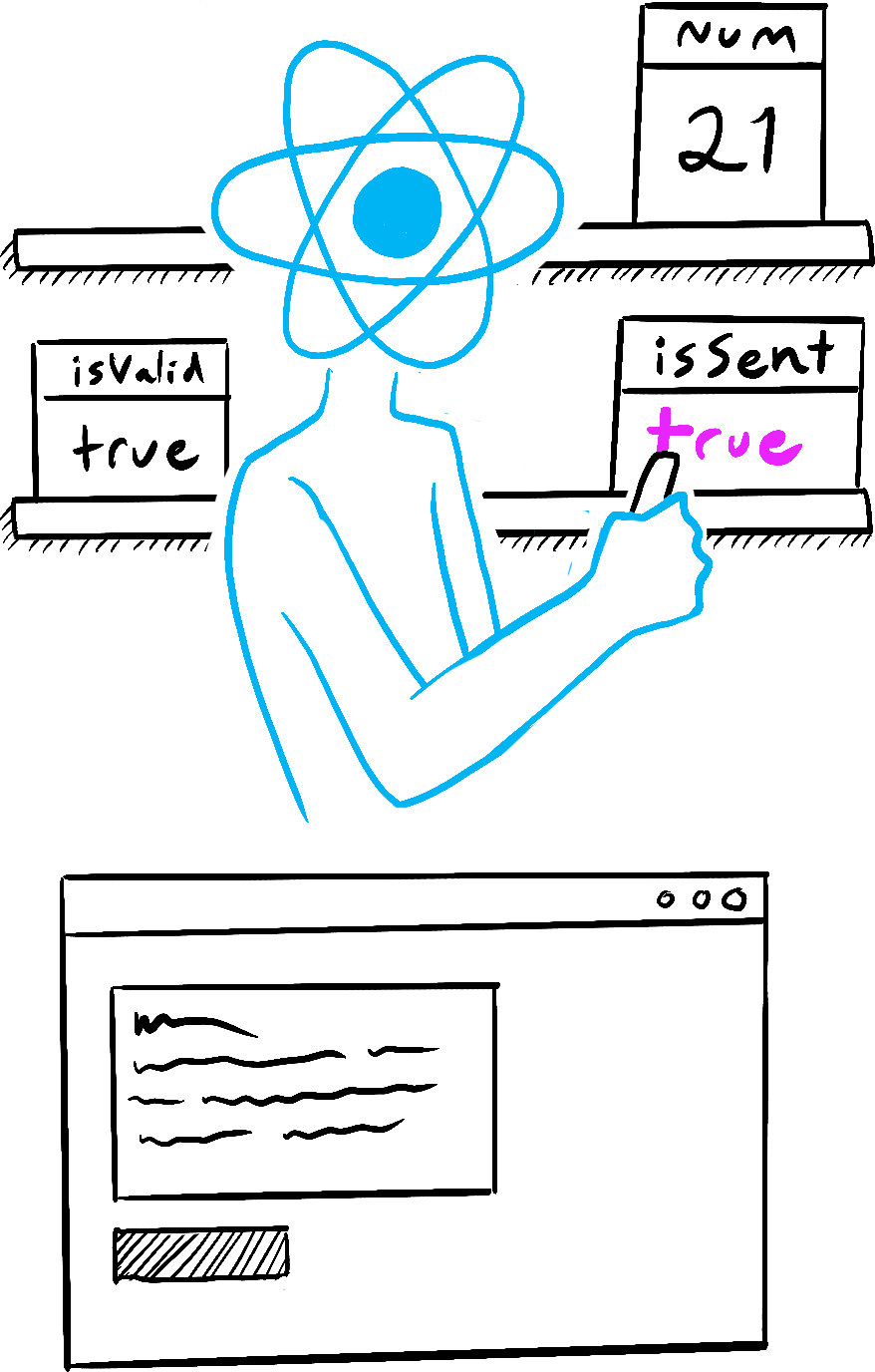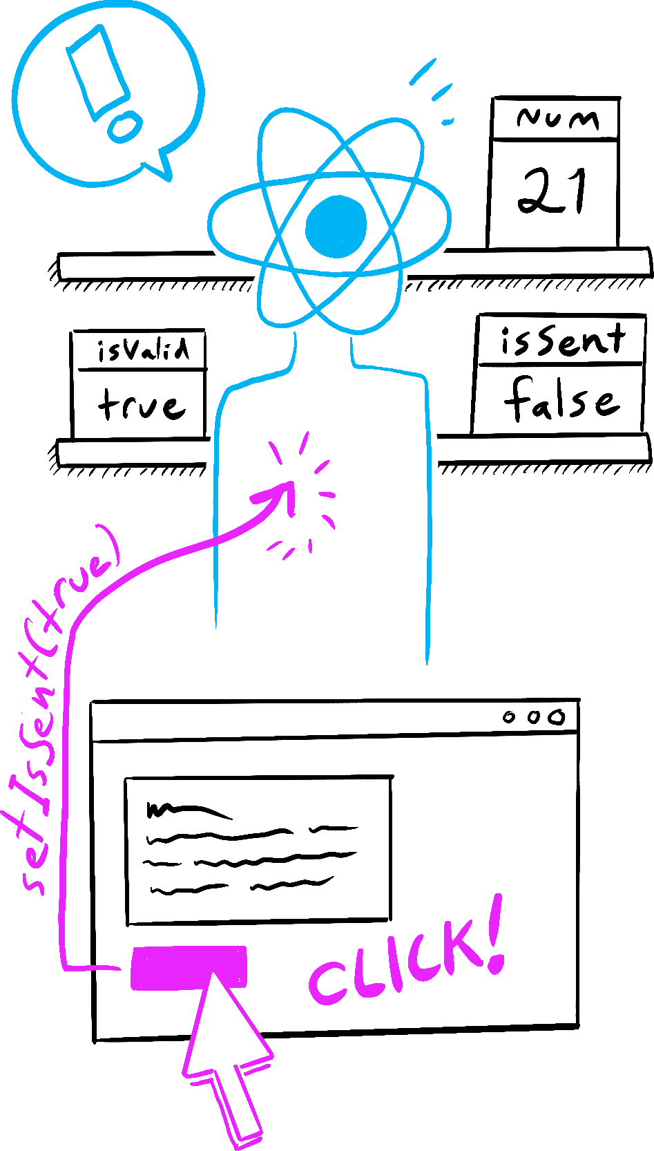 در این مثال، زمانی که دکمه “ارسال” را فشار می‌دهید، setIsSent(true) به ری‌اکت می‌گوید که واسط کاربری را مجدداً رندر کند: